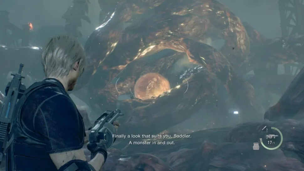 Теперь Леон окажется лицом к лицу с огромной громадиной, состоящей из слизистых усиков и внутренностей, а лицо Саддлера, которое когда-то можно было бить, теперь превратилось в гигантскую светящуюся сферу. Теперь самое время достать все большие пушки, такие как Killer7 Magnum, Stingray Rifle или старый добрый дробовик, чтобы нанести орбу как можно больше повреждений.