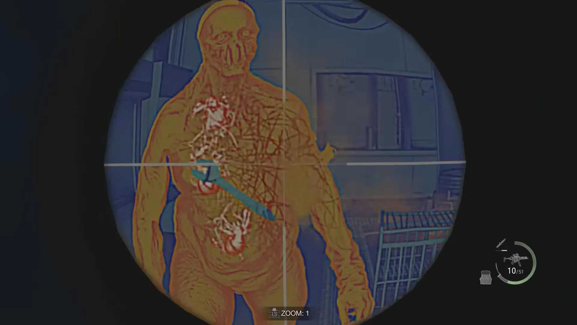 Хотя в ремейке он называется биосенсором (а не инфракрасным прицелом), его функциональность не изменилась. Прикрепленный к оружию, совместимому с прицелом, прицел показывает горячие и холодные точки организмов, причем красные обозначают самые горячие, а темно-синие - самые холодные.
