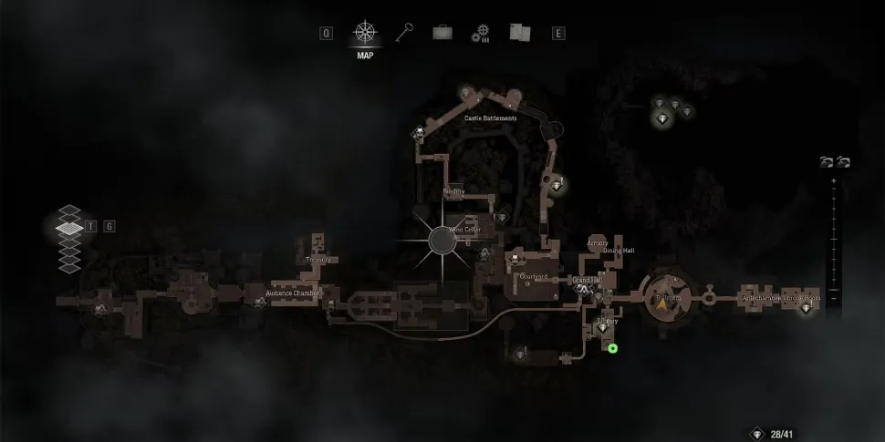Во второй половине главы 9 игроки попадут в секцию, где они должны управлять Эшли и провести ее через ряд темных мест с помощью синего фонаря. Когда они войдут в библиотеку и направятся в конец комнаты, они найдут каменный постамент возле книжного шкафа, где можно поставить фонарь. Это откроет секретный проход к лестнице, которая ведет на чердак над комнатой. Там Эшли найдет набор ключей, необходимых ей для прохождения секции, но игрокам следует запомнить это место на будущее.