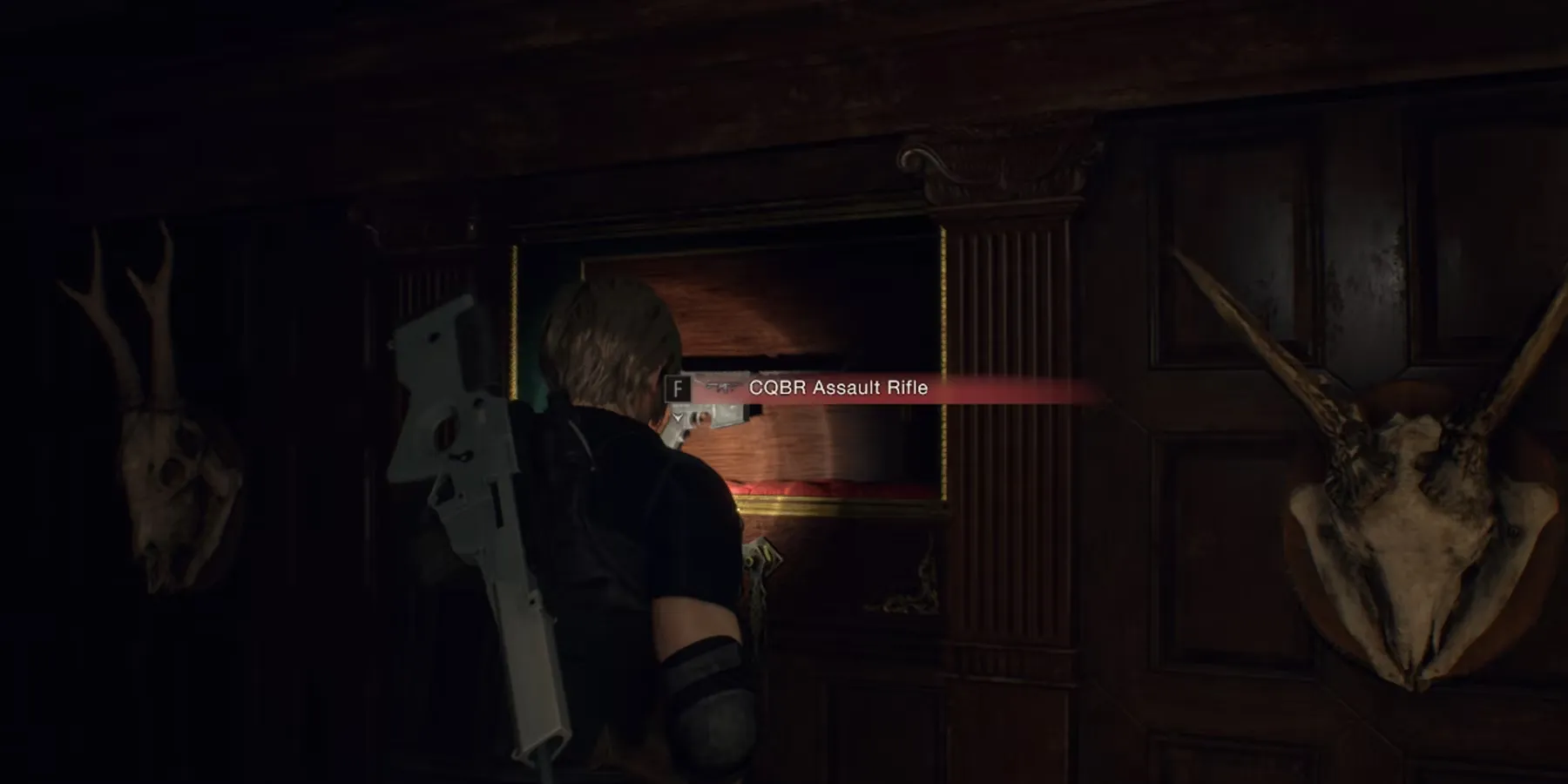 После завершения раздела с Эшли и входа в 10-ю главу игроки снова окажутся в роли Леона. Если они вернутся в библиотеку, где находилась Эшли, то смогут подняться на чердак, где на стене найдут слот для кубического устройства. Разгадав замок, вы откроете стенной сейф и получите в награду штурмовую винтовку CQBR.