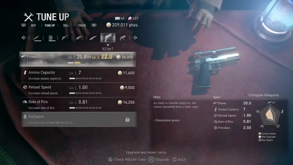 - Killer7, усовершенствованный по сравнению со Broken Butterfly, Killer7 можно приобрести в 13 главе за 77 000 песет или со скидкой в 15 главе.