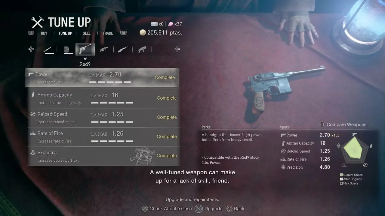 - Handcannon Этот особый магнум является наградой для тех, кто может завершить профессиональный режим без использования бонусного оружия, и после полной модернизации может иметь неограниченное количество патронов.