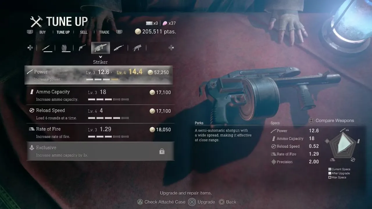 - Striker Потратьте 38 000 песет у торговца в 10 главе, чтобы получить Striker - не менее мощный дробовик, который имеет более широкий размах, чтобы настигнуть больше врагов.