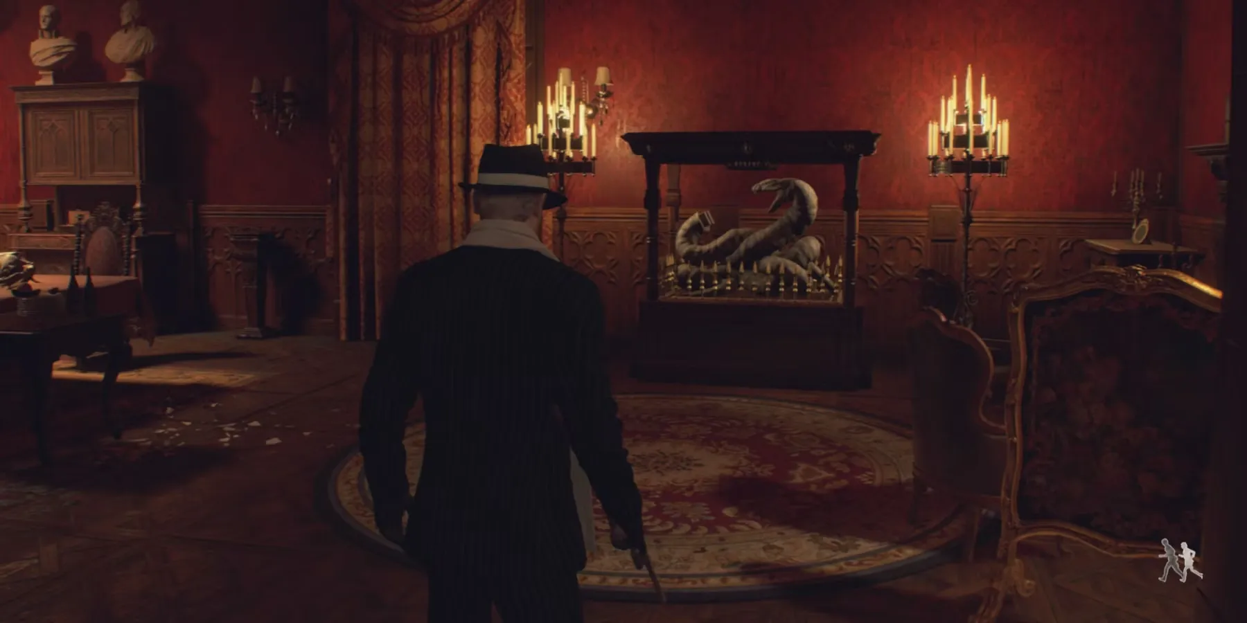 Имея это в виду, Леон должен сидеть на левом стуле рядом со столом, ближайшим к портретам, а Эшли должна сидеть за другим обеденным столом на правом стуле, ближайшем к центру комнаты. Пока Леон и Эшли сидят на правильных местах, звонок в обеденный колокольчик заставит клетку открыться, позволяя Леону достать внутри змеиную голову.