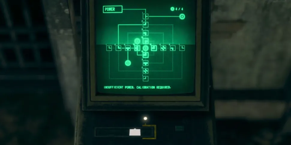 Теперь территория безопасна, а компьютерный терминал работает, и игроки могут сосредоточиться на решении головоломки с питанием компьютерного терминала по утилизации отходов, соединяя линии электропередач снаружи и в центре экрана, перемещая направление потока энергии по одной секции за раз и работая вглубь.