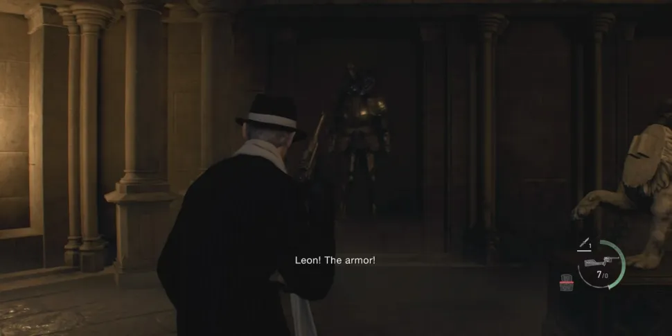 В главе 9 Леон и Эшли получают доступ в большой зал, где они должны работать вместе, чтобы открыть путь вперед. Чтобы открыть потайную дверь, ведущую вглубь замка, они должны найти три головы статуй, спрятанные повсюду. Чтобы заполучить голову льва, Леону нужно победить группу Armaduras, одних из самых опасных врагов в Resident Evil 4 remake.