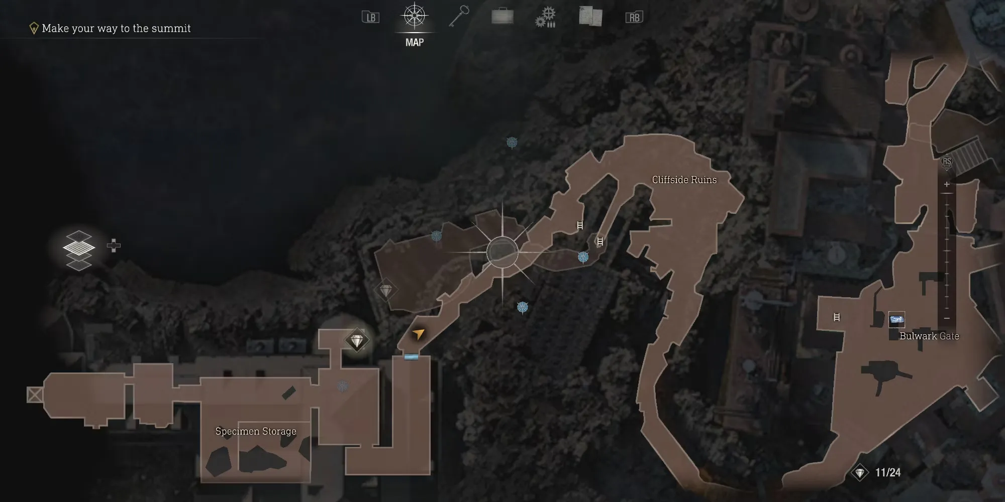 Файл с запросом можно найти рядом со входом в хранилище образцов в главе 15. Подобрав файл, вы отметите на карте общее местонахождение медальонов. Руины на склоне скалы доступны после продолжительного отрезка, когда Леон получает помощь с вертолета. Позаботьтесь о медальонах, прежде чем войти в хранилище образцов.