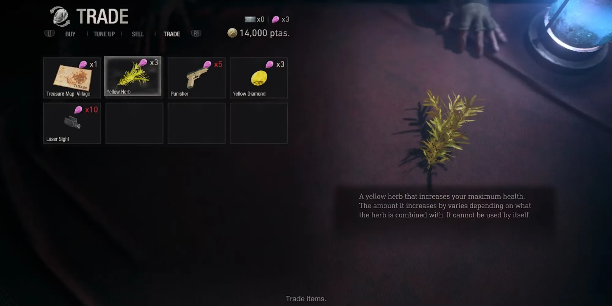 Лучший способ максимально увеличить запас HP - это употребление желтых трав. Эти предметы не съедобны сами по себе, но в смеси с красными или зелеными травами желтые травы увеличивают силу Леона. Чтобы полностью увеличить запас здоровья, игроку нужно съесть 12 таких трав.