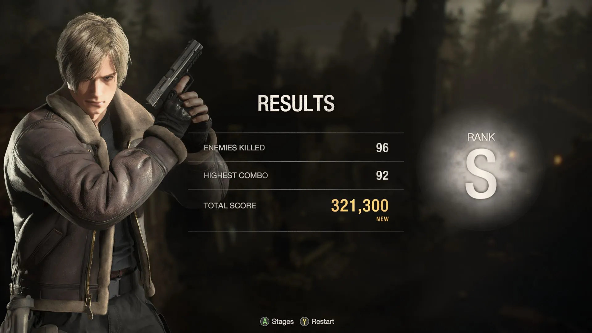 В ремейке Resident Evil 4 эффективность Леона оценивается по тому, как быстро он побеждает в кампании - или сколько раз он использует печатные машинки. А в конце последней главы ему присваивается ранг, основанный на его результатах: A, B, S или S+.