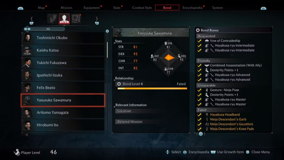 Тем, кто надеется накопить побольше очков ловкости, стоит приготовиться к тому, что придется попотеть в додзё, так как наградой за тренировки, в которых вы заканчиваете бои на высоком уровне, часто становятся очки ловкости. В противном случае вам остается строить тесные отношения с союзниками, завершать задания и использовать трактаты.