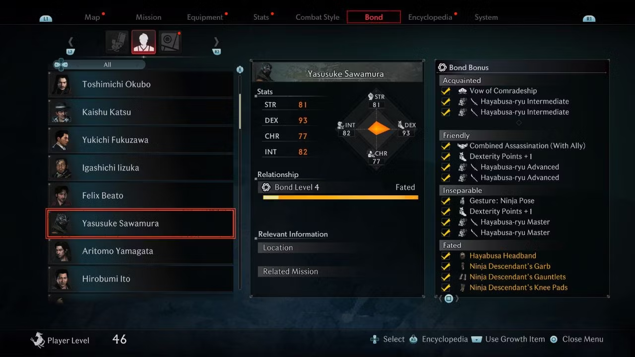 Тем, кто надеется накопить побольше очков ловкости, стоит приготовиться к тому, что придется попотеть в додзё, так как наградой за тренировки, в которых вы заканчиваете бои на высоком уровне, часто становятся очки ловкости. В противном случае вам остается строить тесные отношения с союзниками, завершать задания и использовать трактаты.