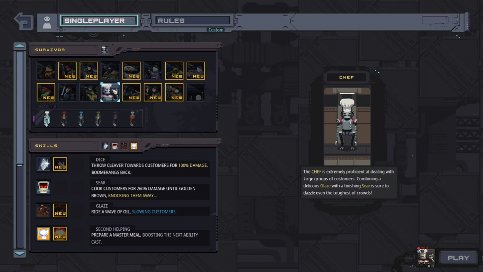 Для разблокировки Шефа необходимо собрать очень специфический набор предметов, а именно: буйный гриб, мясной самородок, прорастающее яйцо, иноземный фрукт и горький корень. Все предметы должны быть собраны за один заход, поэтому, если игрокам не везет, для разблокировки этого персонажа им следует найти и использовать Артефакт командования.