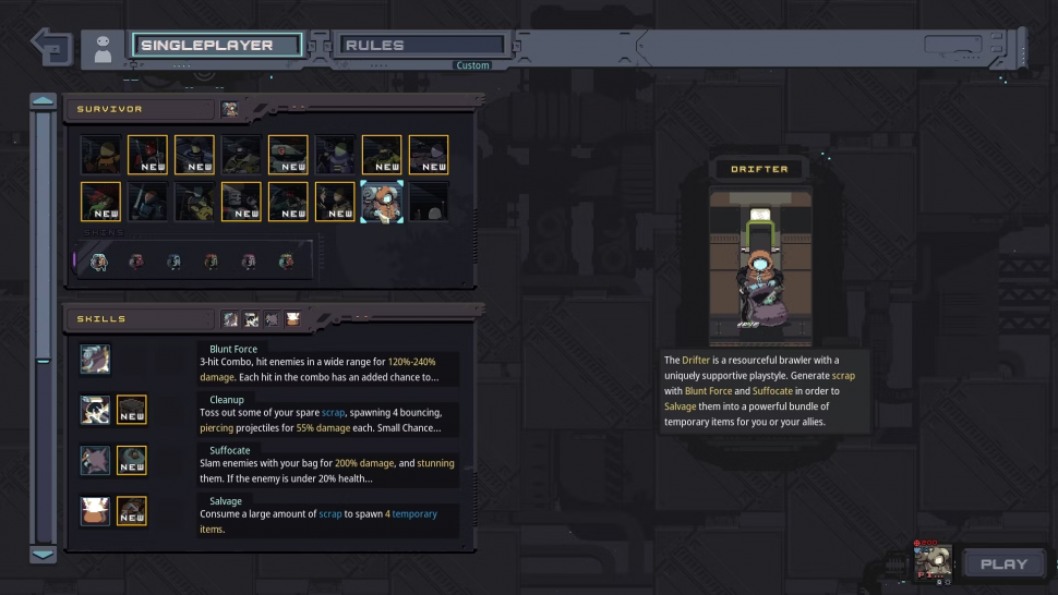 Разблокировка Дрифтера связана с большой долей везения. Чтобы получить его, игроку нужно найти шесть дронов и бросить их все в утилизатор дронов, причем за один заход. Лучший способ сделать это - использовать Artifact of Command, чтобы получить оборудование Drone Repair Kit, вызывающее специального дрона, который можно переработать. Вызовите и переработайте дрона шесть раз, чтобы открыть Дрифтера.