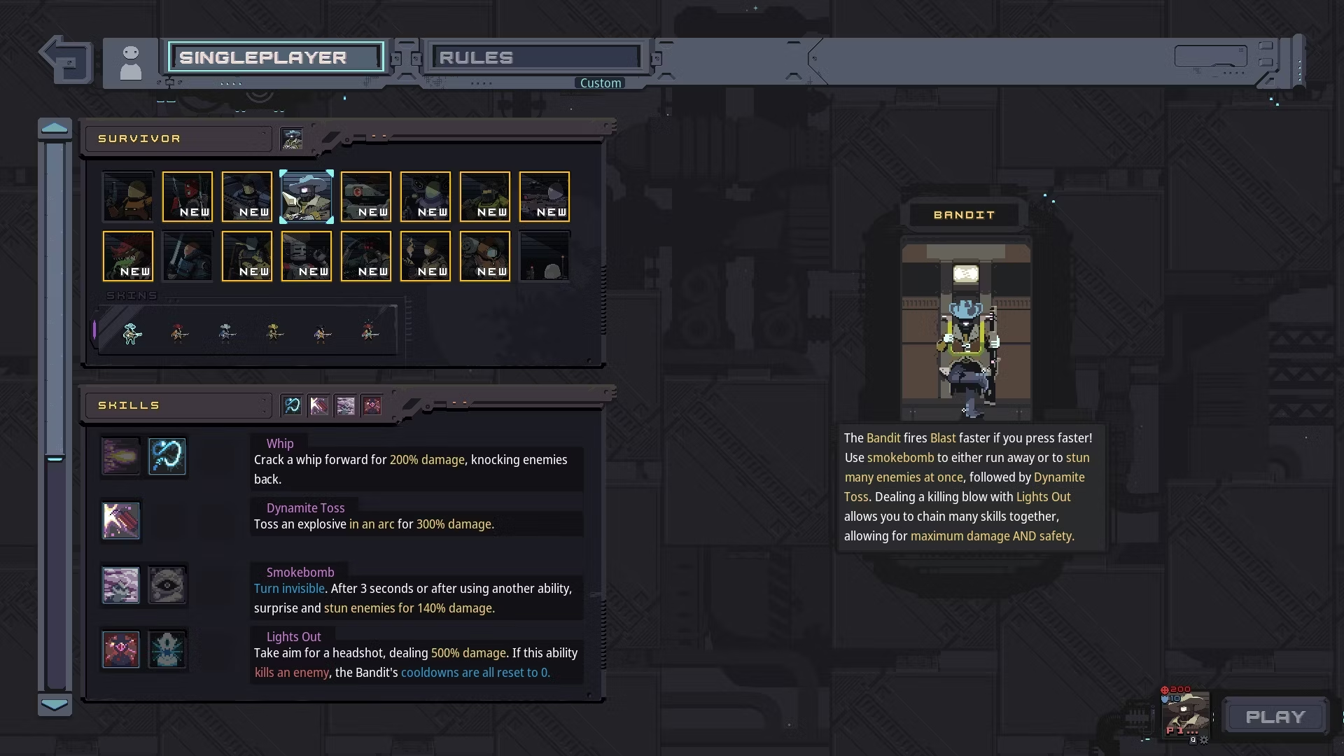 Бандит - это, скорее всего, первый персонаж, который будет разблокирован игроками. Чтобы получить его, нужно просто победить на третьем этапе во время любого забега. Для разблокировки персонажей лучше всего начинать забег на сложности Drizzle, при этом ползунок Damage Dealt в меню Rules должен быть поднят до 200%.