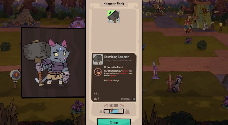 У Rotwood есть несколько видов оружия, которые можно опробовать, путешествуя по диким землям, но в начале игры доступен только молот.