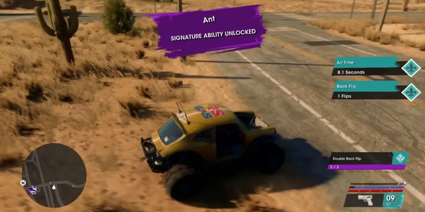 После выполнения двух двойных сальто назад игроки получат сообщение на экране о том, что способность Super Air Control Signature разблокирована. Однако прежде чем воспользоваться ею, нужно будет отправиться в гараж Джима Роба, чтобы активировать ее. Пока они там, они могут подумать о том, чтобы добавить к Ant комплект закиси азота, если они этого еще не сделали. Установка одного или двух комплектов модернизации также может помочь, хотя и не так сильно, как комплекты Nitrous и Offroad.