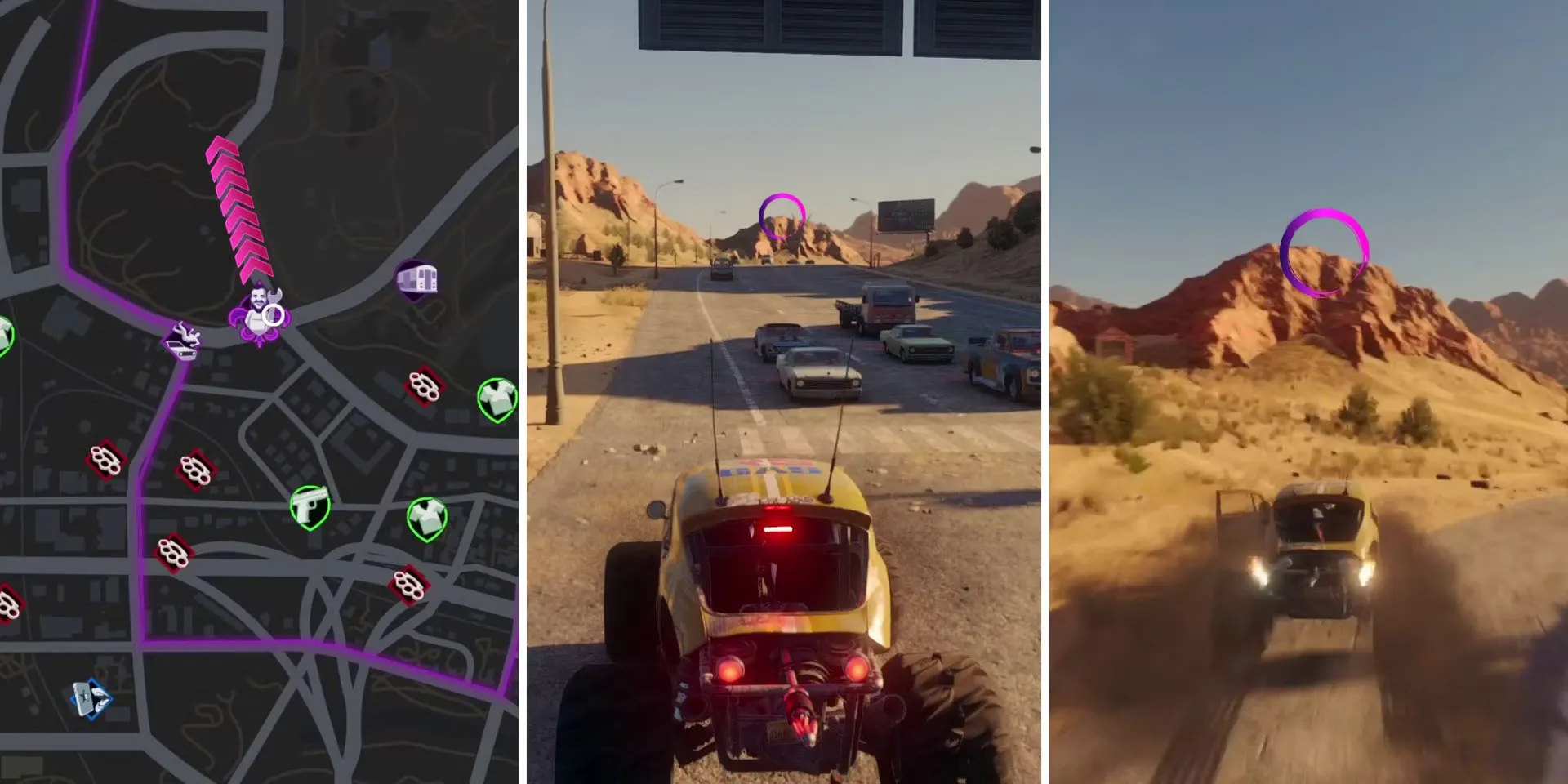 Теперь, когда машина готова, игроки могут выехать из гаража Джима Роба и отправиться по дороге на северо-запад. Сразу же начните расходовать закись азота, объезжая встречный транспорт, чтобы она не закончилась. Примерно через десять секунд они должны продолжить движение прямо, когда дорога отклонится вправо, а затем нацелиться на скалу впереди них. Как только они окажутся в воздухе, им следует нажать и удерживать кнопку L1/LB, чтобы активировать Super Air Control, а затем, как и раньше, потянуть левый аналоговый стик вниз.