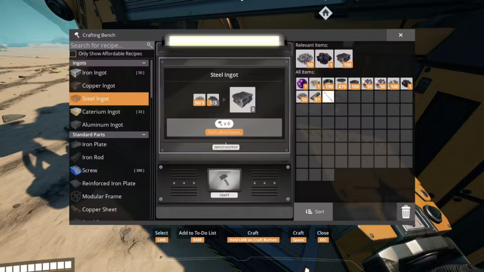 Даже после достижения соответствующей вехи игроки все равно не смогут создать сталь, так как для рецепта требуется дополнительный материал, который, возможно, еще не разблокирован.