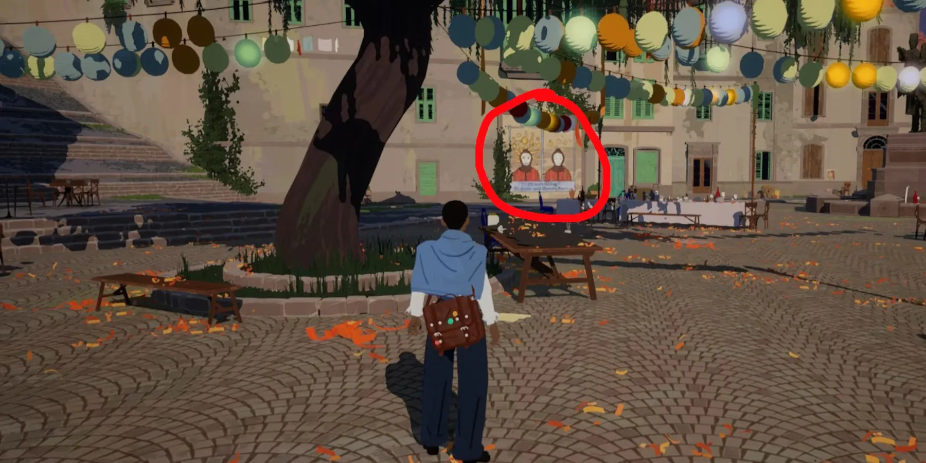 Вторая фреска находится в дальней правой части площади. Хотя эта фреска не похожа на две другие, она все равно является одной из тех, которые игроки должны сфотографировать. Как только вы окажетесь у основания лестницы из дома матери Эстель, поверните направо и идите в конец площади. Там на стене будет висеть фотография Доктора после его гибели, а под ней - несколько записок, нацарапанных от руки.