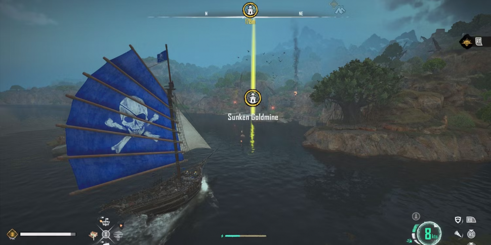 Конечно, поскольку Sunken Goldmine - это аванпост, то, добравшись до него в первый раз, вы получаете возможность использовать механику быстрого перемещения Skull and Bones как там, так и в других местах, а обратный путь можно пропустить за небольшое количество серебра.