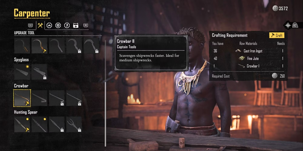 Все инструменты в Skull and Bones, включая ломик, могут быть улучшены до определенного уровня только путем приобретения соответствующего чертежа и необходимых ресурсов для улучшения. Чертежи достать довольно легко. Однако необходимо найти нужный чертеж для того предмета, который вы хотите изготовить. Чертежи можно найти, выполняя контракты и миссии, а также покупая их у бесчисленных торговцев, разбросанных по всей карте игры.