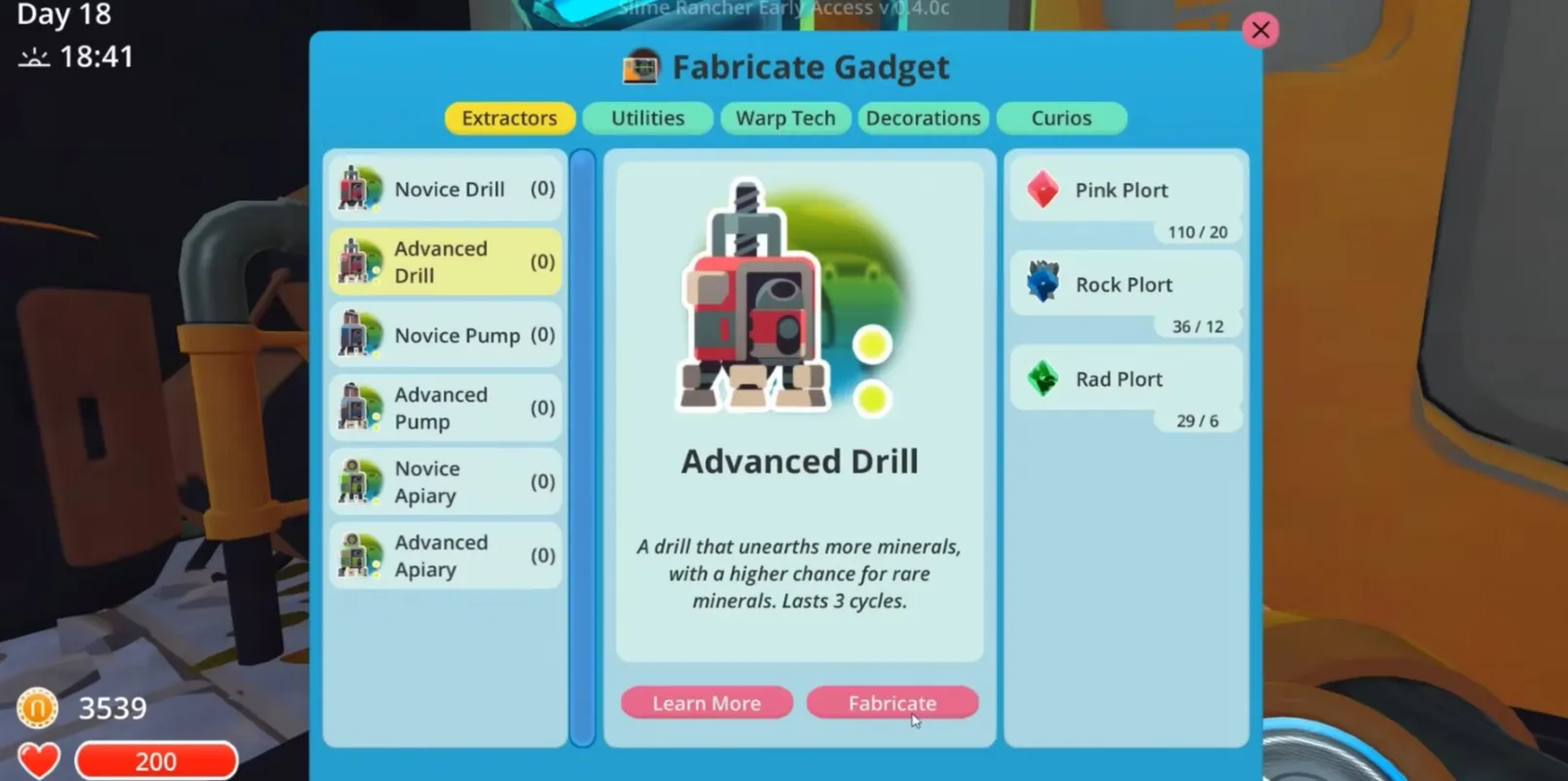 Slime Science позволяет игрокам построить ряд приспособлений для сбора ресурсов, которые можно использовать для сбора ресурсов на Дальнем полигоне, например, дрель, пасеку и насос. Они могут быть разного качества и использоваться для сбора ресурсов в том или ином регионе. Каждому экстрактору требуется 12 игровых часов для выполнения одного цикла. Экстракторы более высокого качества выполняют больше циклов до поломки и имеют больше шансов добыть ресурсы более высокого качества.