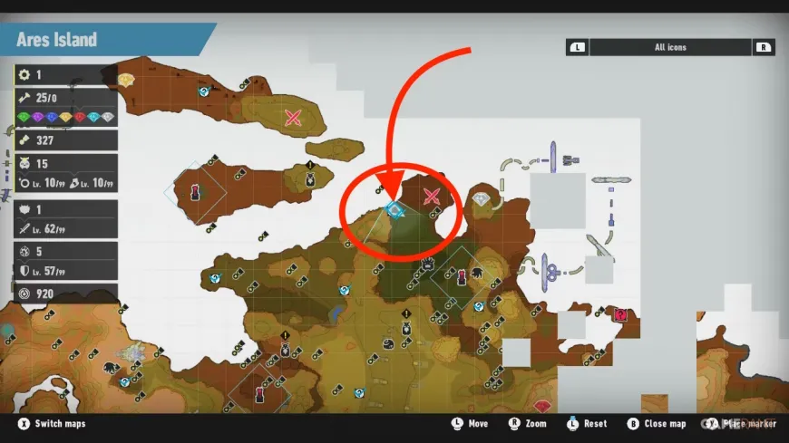Игроки могут увидеть местонахождение головоломки M-038 на изображении ниже. Она находится на острове Арес, в северной его части. Чтобы найти ее, попробуйте поискать к западу от серебряного Изумруда Хаоса и к юго-востоку от желтого Изумруда Хаоса. Головоломка также находится в нескольких шагах к северо-западу от уровня 2-7 Киберпространства.