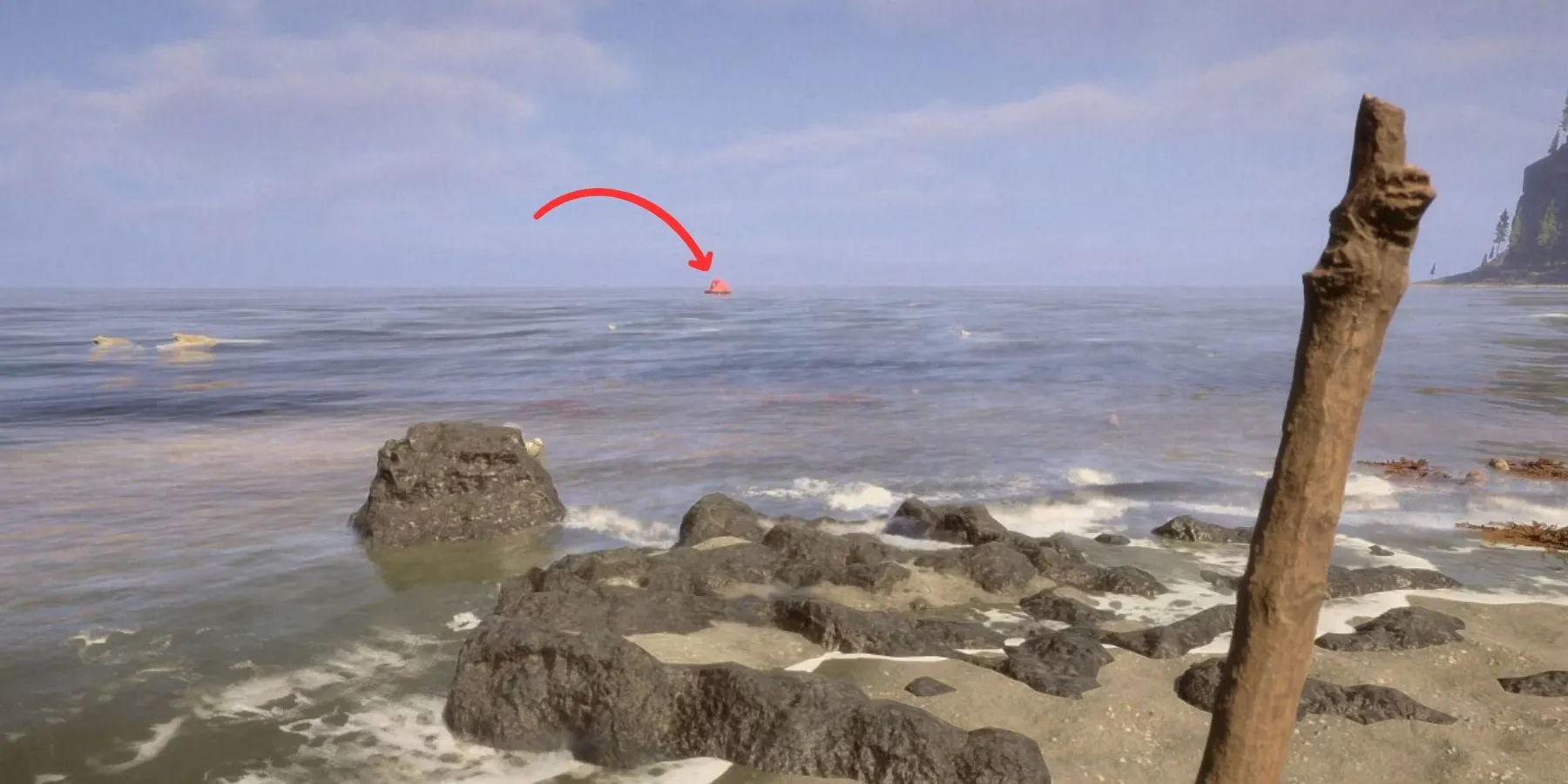 У погибшего солдата внутри плота находится GPS-локатор, некоторые припасы, патроны и пистолет. После экипировки его можно достать из инвентаря и добавить в рюкзак, чтобы быстро его достать. Следующий шаг - вернуться на берег целым и невредимым.