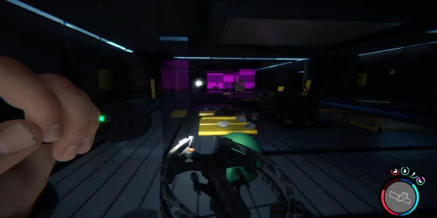 Протиснитесь через щель в другой зал, одна сторона которого заблокирована камнями и грязью, а другая - запертыми дверями. Используйте ключ-карту, чтобы отпереть двери. Игроки увидят множество тренажеров в темной комнате с фиолетовым светом. Справа находится бильярдная с еще большим количеством оборудования, а слева - группа мутантов.