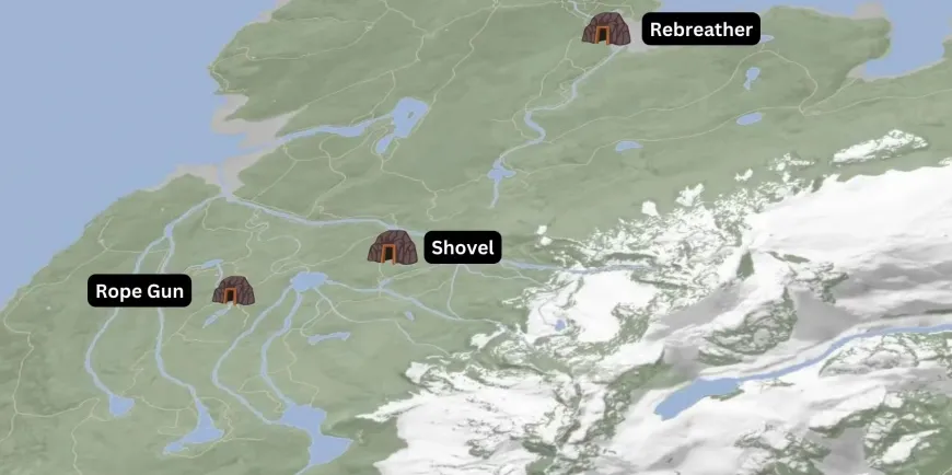 Поскольку пещера с ребризером самая маленькая из всех трех, и если игроки появятся на пляже, они смогут почти сразу же взять ребризер, если только не захотят сначала взять фонарик для улучшения видимости. Пещеры с веревочным пистолетом и лопатой больше, в них больше мутантов. Чтобы пройти их целыми и невредимыми, может понадобиться более мощное оружие, например пистолет.