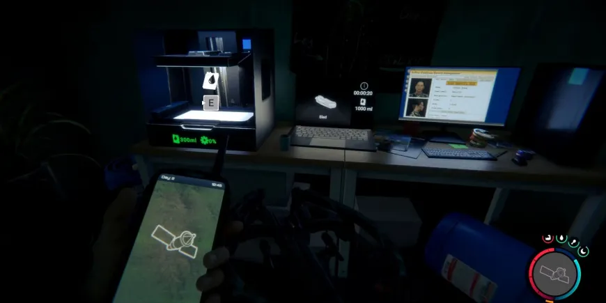 - Удерживайте "E", чтобы запустить процесс печати. Если смолы для принтера недостаточно, печать нельзя будет отменить, поэтому игроки должны собрать необходимое количество, чтобы запустить принтер.