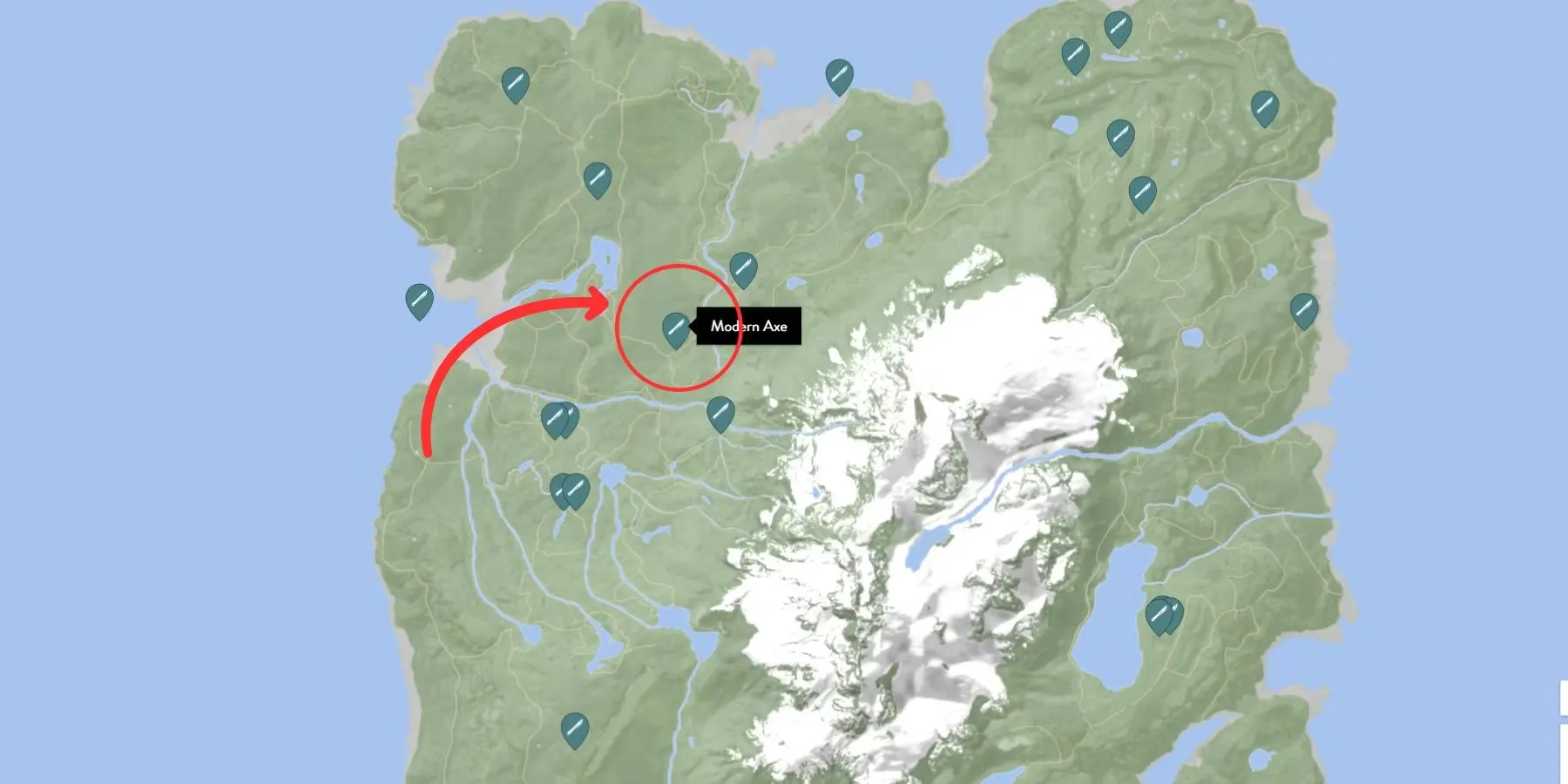 Современный топор находится на северо-западной стороне острова. Для тех, кто пытается достать его из точки спавна, он находится почти в центре, но ближе всего к точке спавна на горе. Чтобы найти его, игроки могут поискать один из фиолетовых маркеров GPS-локатора на карте поблизости.