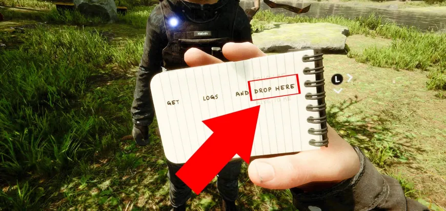 Сбрасывать предметы - одна из семи команд, которые понимает Кельвин. Чтобы использовать ее, просто выберите "Бросить здесь" или "Отдать мне" в блокноте. Некоторые команды, например "Собрать бревна", не нуждаются в отдельном порядке сброса, поскольку он поместит их рядом с лагерем.