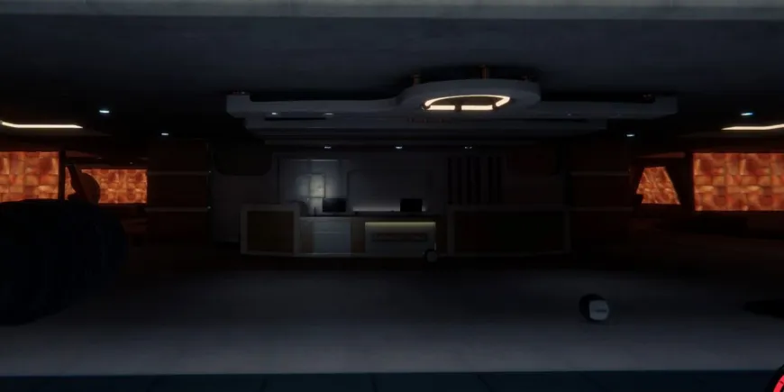 Откройте дверь и спуститесь по лестнице в небольшую комнату с парой ящиков с припасами. Примерно в середине коридора справа есть коридор с открытой дверью, а в конце - складское помещение. Дверь в коридоре ведет в полностью меблированную квартиру. Внутри на столе рядом с 3D-принтером вы найдете ключ-карту технического обслуживания.