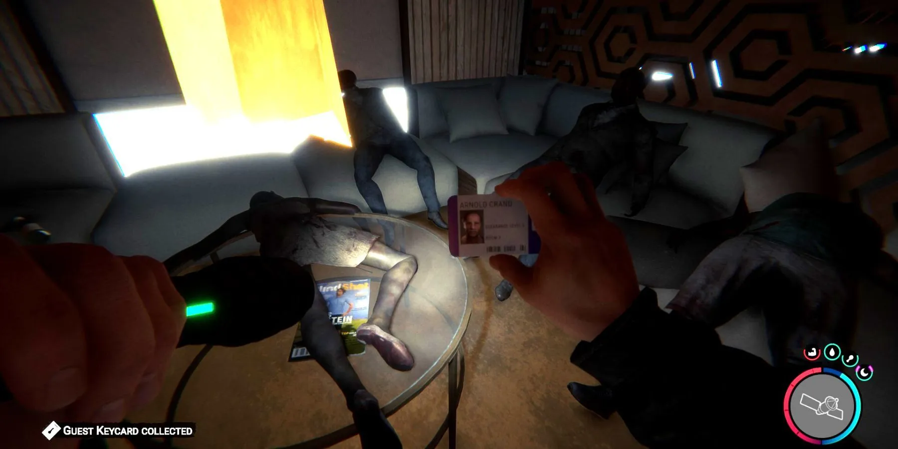 Они поймут, что находятся в нужном месте, когда увидят в центре покойника с засунутой в горло гитарой. Пройдите в заднюю часть клуба к кабинкам, и на заднем правом столе с пятью трупами будет лежать ключ-карточка гостевой.