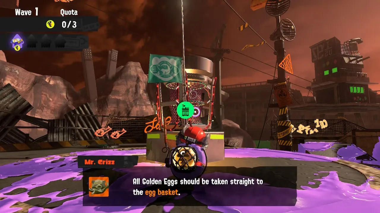 Как только игроки попадут внутрь Гризко, взаимодействуйте с оранжевым кулером, чтобы начать смену. На игрока будут нападать несколько волн лососей, и команда должна победить их, чтобы собрать золотые яйца. Схватив яйцо, игроки могут бросать их в корзину для яиц, чтобы набрать очки. Если лимит не будет заполнен, смена закончится; однако можно заработать дополнительные очки, если игроки постараются и соберут больше золотых яиц до истечения времени.