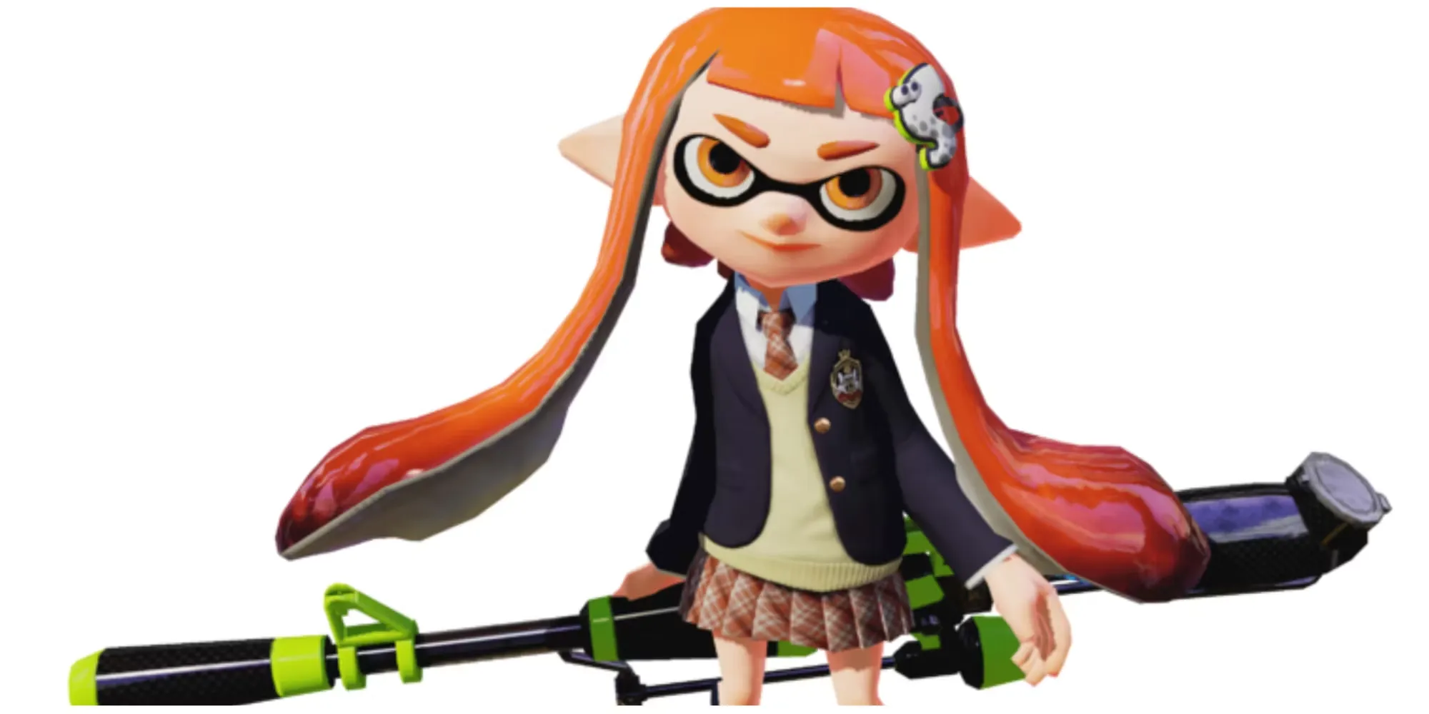 Наряд школьной формы состоит из трех частей. Основной наряд представлен в двух вариантах: вариант А состоит из клетчатой юбки, которая может менять свой цвет в зависимости от того, какие чернила есть у игрока. Вариант Б - это более короткий свитер без юбки. В качестве головного убора школьная форма представляет собой заколку для волос в виде кальмара. Наконец, в комплект наряда входят школьные туфли.