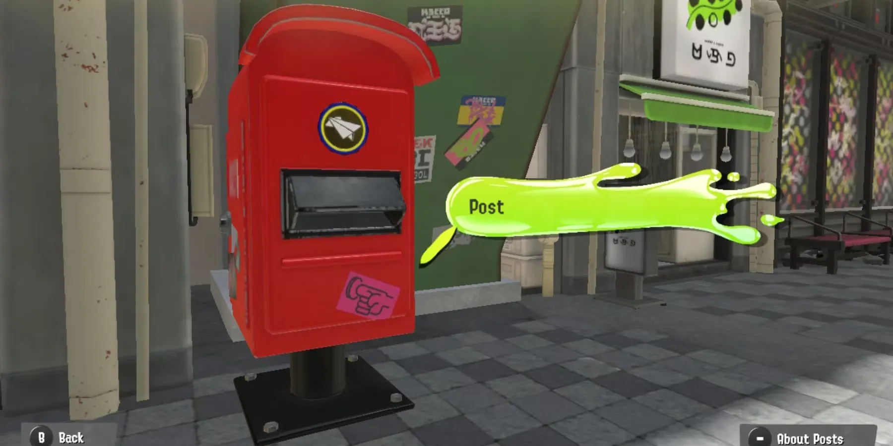 Если выбран красный почтовый ящик, есть возможность просмотреть правила и положения постов в Splatoon 3. Ознакомьтесь с ними, нажав кнопку "минус". В них в основном изложены правила, которые игроки никогда не должны публиковать. К ним относятся: