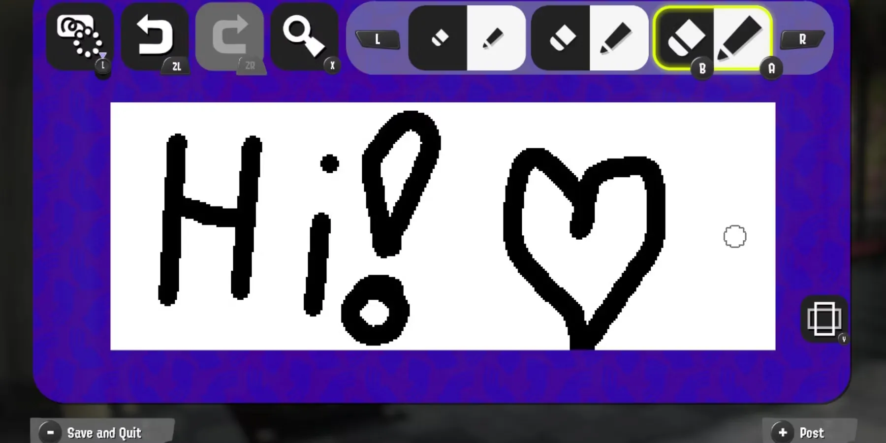 - Кнопка ZL стирает последний мазок кисти.