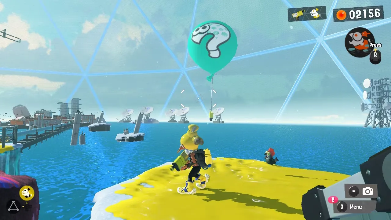 Найдите синий загадочный шар к северу от чайника "Propellered to Greatness". Пройдите испытание на разбивание шаров, чтобы открыть 15 свиток в Splatoon 3.