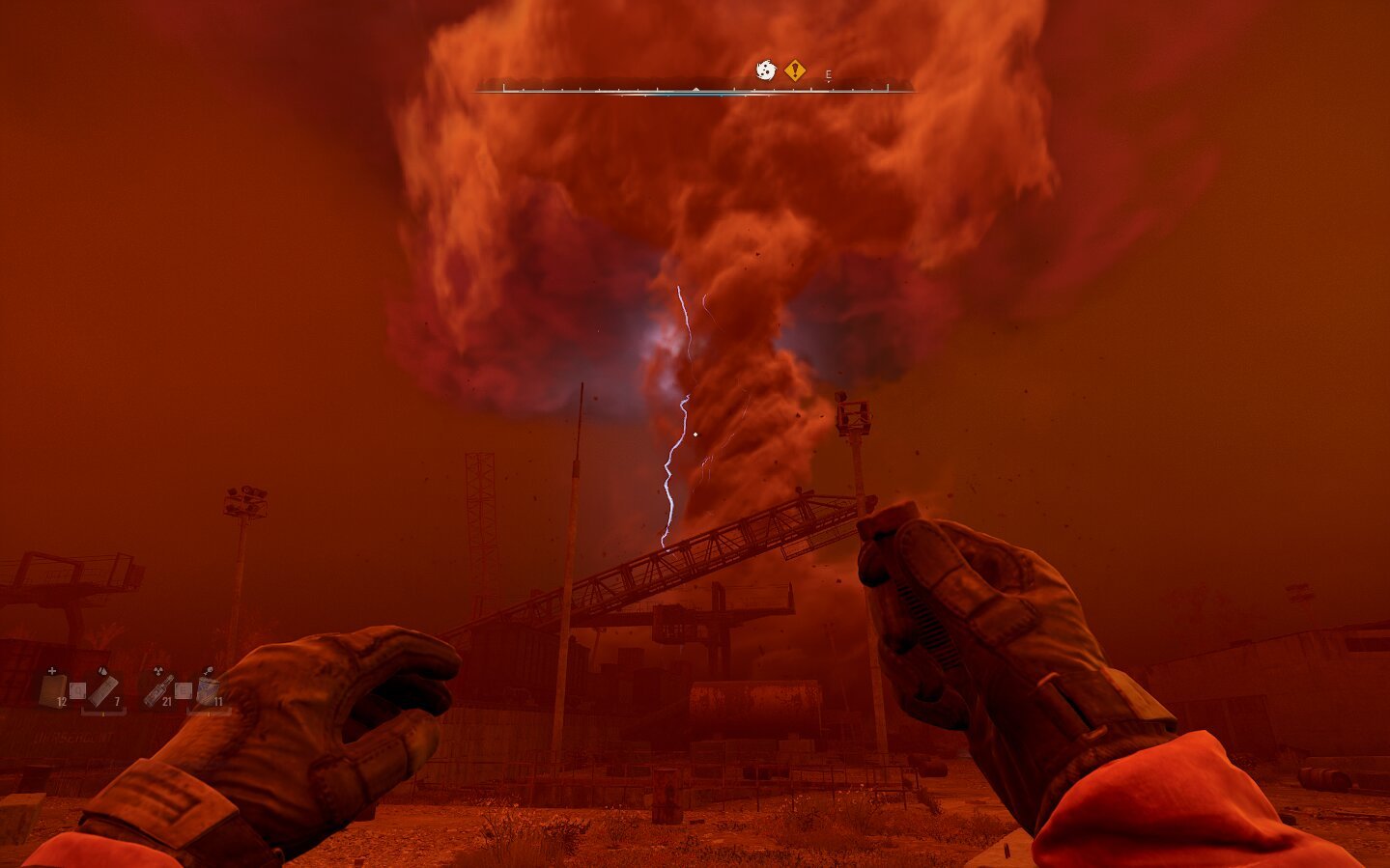 Теперь вам нужно дождаться подходящего момента, когда артефакт пронесется в Вихре рядом с вами. Здесь существует вероятность получить много урона от других осколков, так что держите аптечки наготове. Странный болт вращается в торнадо, и вам нужно угадать момент, когда он будет проноситься рядом с вами.