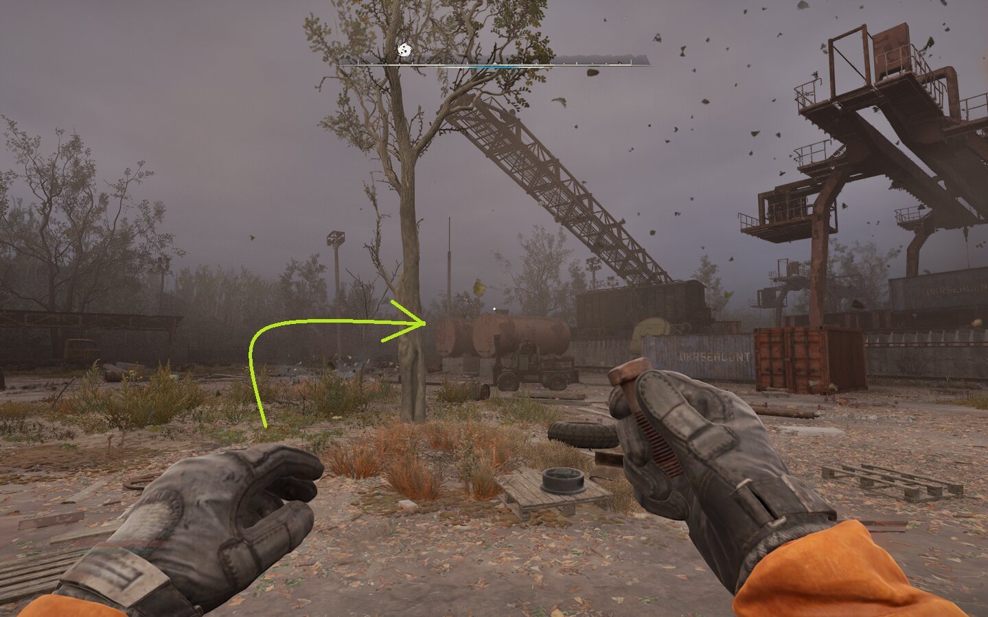 - Обойдите контейнеры и цистерны справа, зайдя на другую сторону конструкции.
