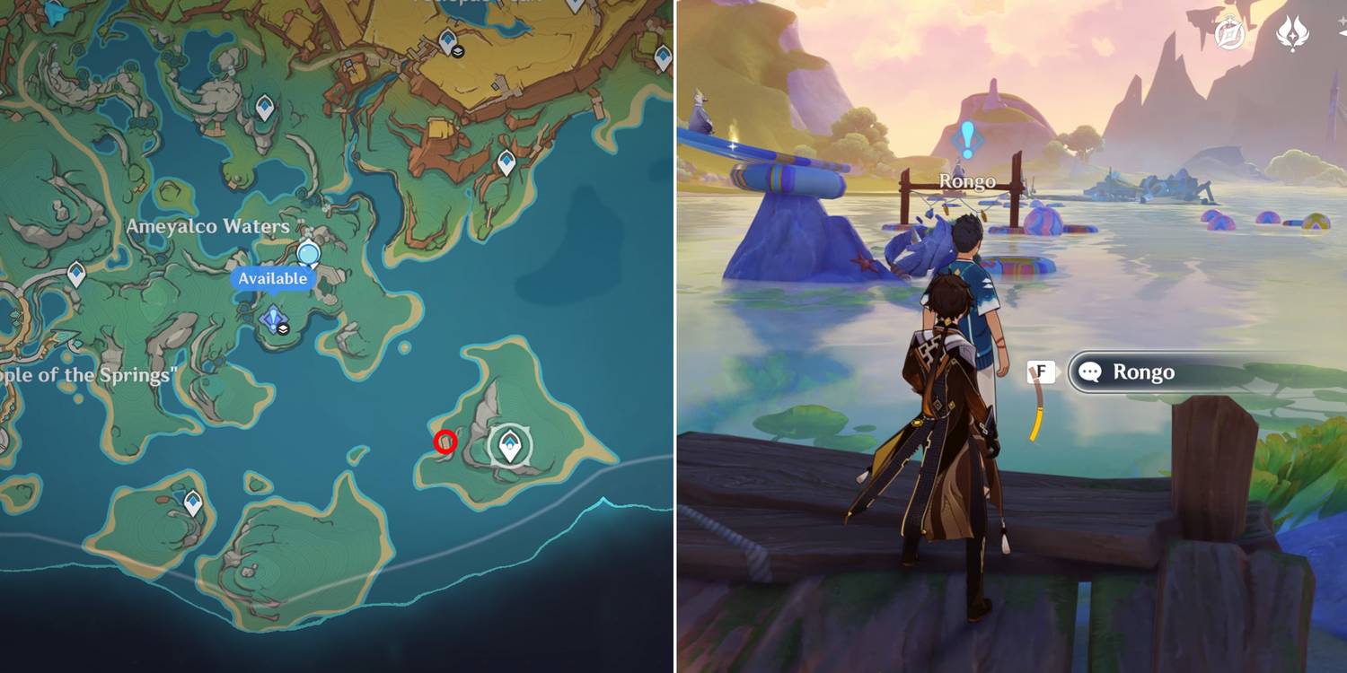 В квесте Stride on Rainbows, Split the Waves в Genshin Impact Ронго, представитель народа источников, решает построить Великую тренировочную площадку, чтобы возродить боевой дух своего племени и вернуть ему былую славу. Он объясняет, что когда-то их предки оттачивали навыки серфинга в соответствии с племенной традицией, чтобы обострить свою волю, но теперь этого никто не практикует. Обеспокоенный беззаботной жизнью племени, Ронго стремится возродить эту традицию.