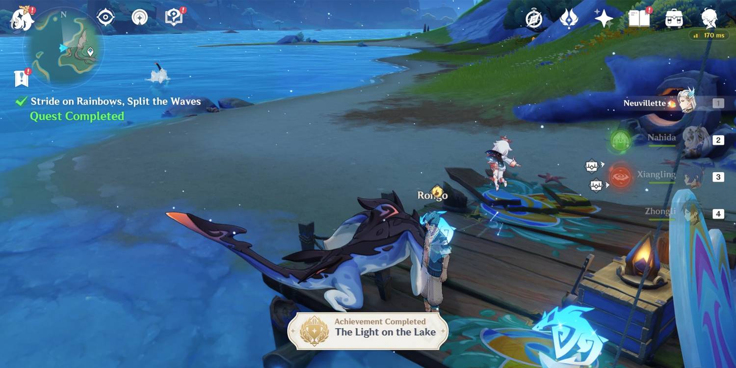 Выполнение квеста «Пройди по радуге, раздели волны» даст игрокам достижение «Свет на озере» в Genshin Impact.