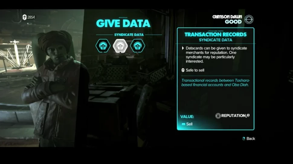 И наконец, вы можете продавать диски с данными торговцам, входящим в Синдикат. Диски с данными можно найти на вражеских аванпостах и складах, в то время как торговцев из Синдиката можно найти в каждом крупном городе.