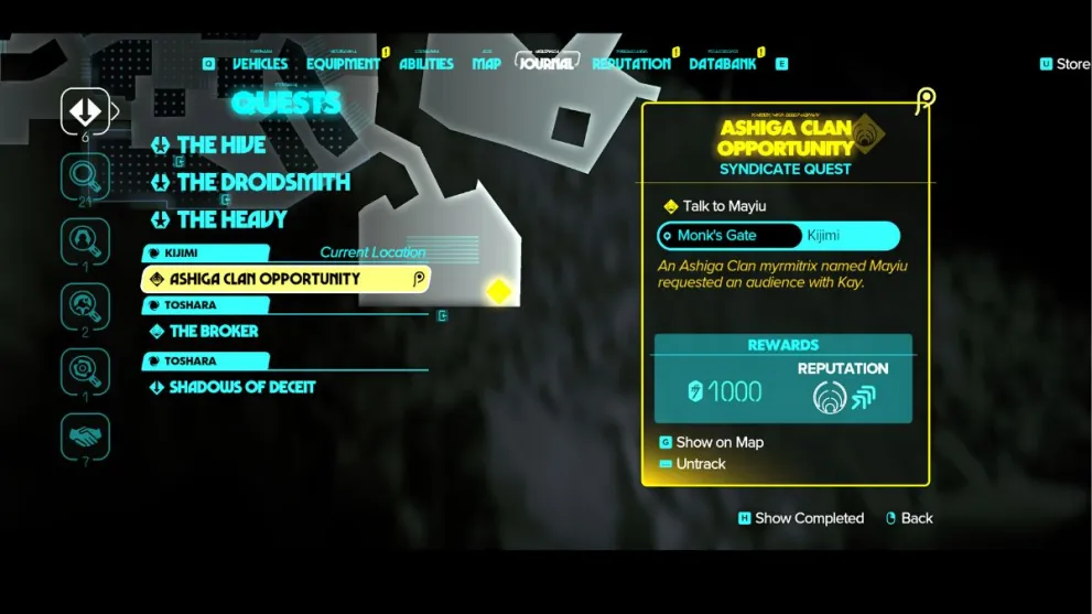 Квесты синдиката - лучший способ быстро повысить свою репутацию. Каждый квест Синдиката может значительно повысить репутацию определенной фракции. Однако это сложные побочные квесты, и их выполнение может занять до 30-40 минут, а то и больше.