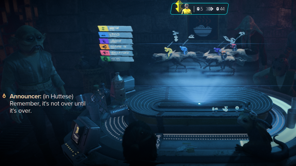 В Star Wars Outlaws есть разные способы играть в азартные игры. Вы можете попробовать свои силы на скачках, сыграть в Сабакк в салоне с высокими ставками или сделать несколько быстрых ставок в терминале. Небольшие ставки - это весело и не вредно, но реальной прибыли они вам не принесут. Если же вы хотите выиграть большие деньги, то вам гарантирован выигрыш с помощью секретной информации или хитрых мошенников.