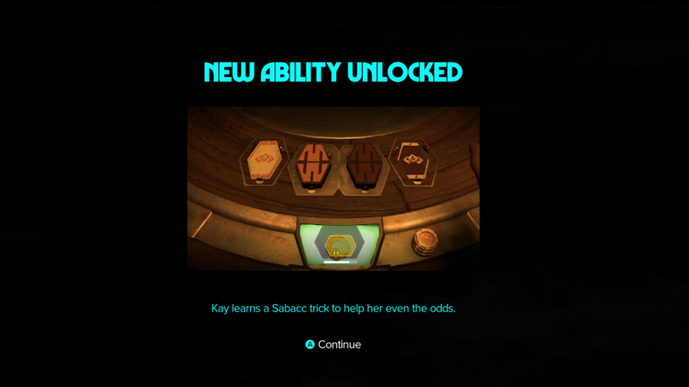 Чтобы жульничать в Сабакке, Кей сначала нужно встретиться с экспертом «Крупный Игрок» и разблокировать способность «План А». Эта способность позволяет Кей дважды вытягивать жетоны, что дает ей больше шансов получить "хорошую руку".