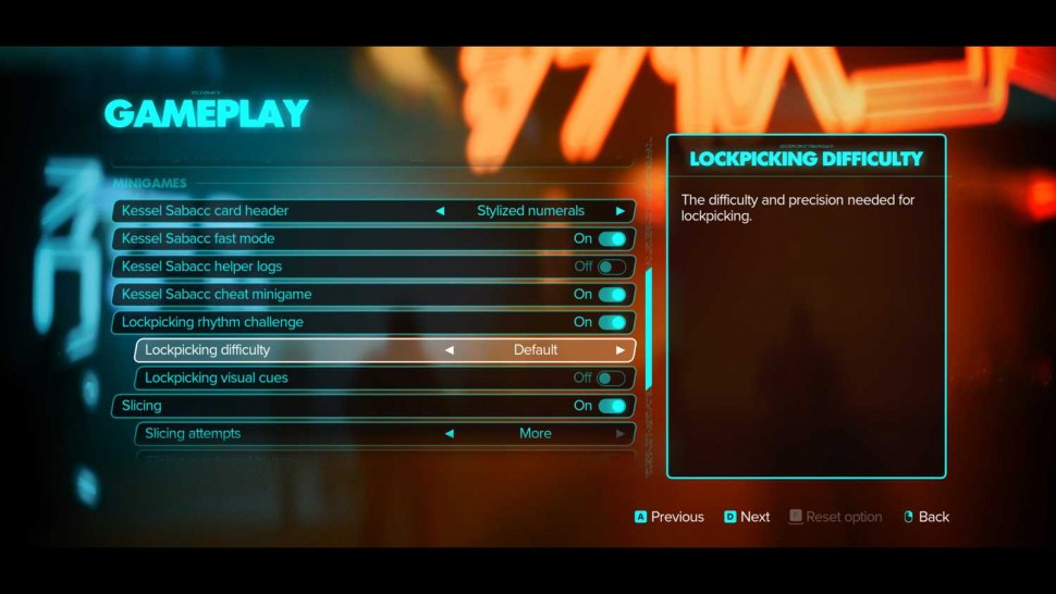Игрокам, которые испытывают трудности с таймингом, повезло: в Star Wars Outlaws есть широкий выбор опций доступности, несколько из которых относятся к мини-игре «Взлом замков». Опция сложности взлома замков позволяет упростить использование шипа данных, а включение визуальных подсказок также может существенно помочь. Кроме того, игроки могут просто отключить задание ритма во взломе замков, и в этом случае им больше не придется следовать ритму при использовании шипа данных.