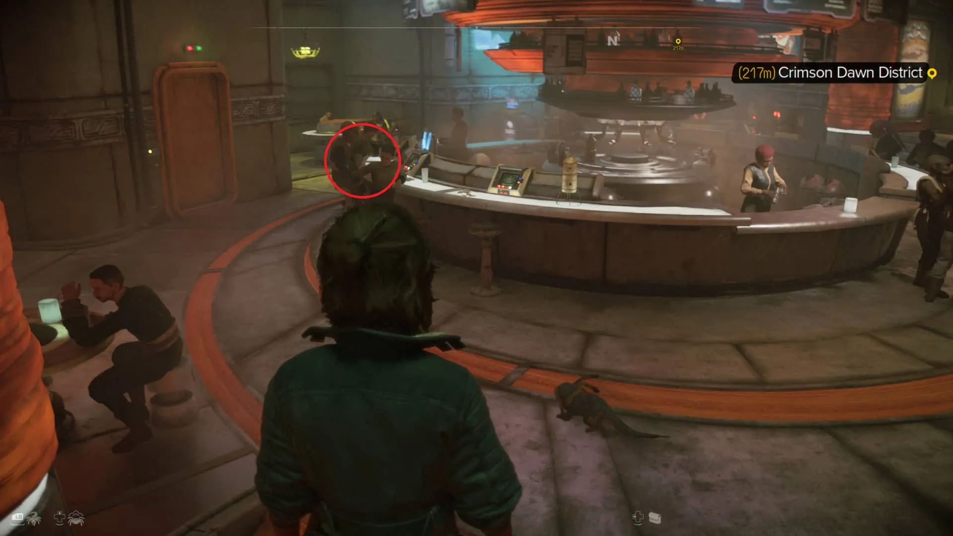 Информация, полученная от Данки о нарезчике, направит вас к игорному заведению Макала, с которым вы уже знакомы на данный момент. Когда вы доберетесь до игорного салона, игра не расскажет вам о том, как найти эту информацию. Ваш дневник просто сообщает вам: «Некоторые преступники, ошивающиеся у Макала, хотят нанять лучшего нарезчика на Тошаре». Идите в левую часть бара, где вы увидите подсказку, чтобы подслушать разговор.